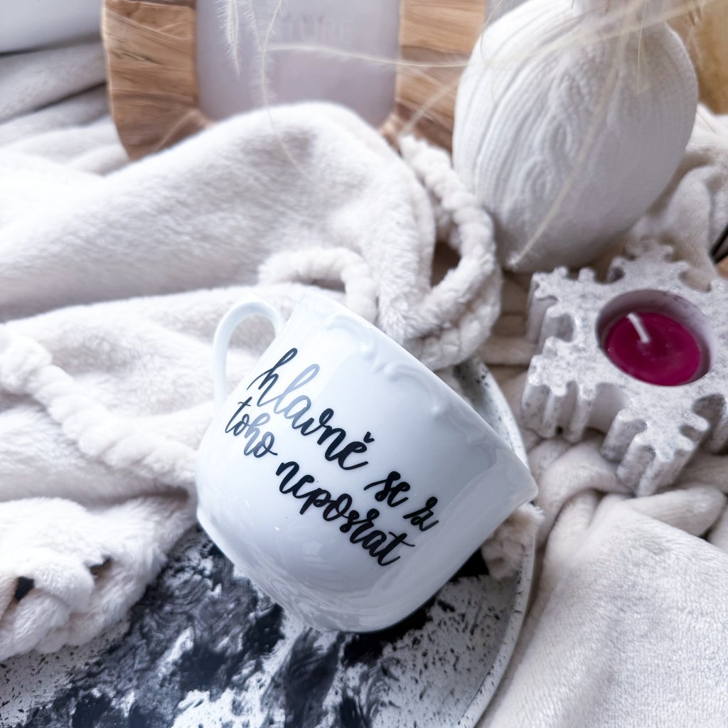 Minimalistický hrnek s autorským motivem psaným ručně naším originálním fontem.