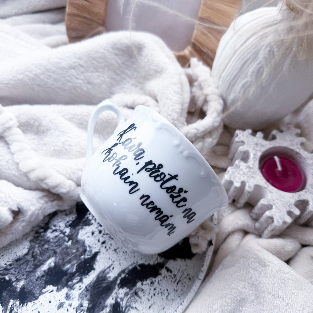 Minimalistický hrnek s autorským motivem psaným ručně naším originálním fontem.