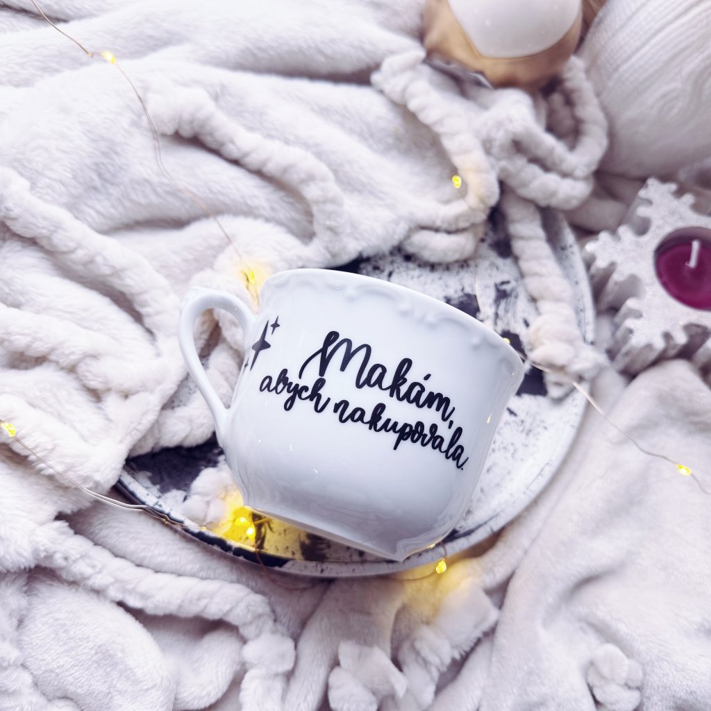 Minimalistický hrnek s autorským motivem psaným ručně naším originálním fontem.