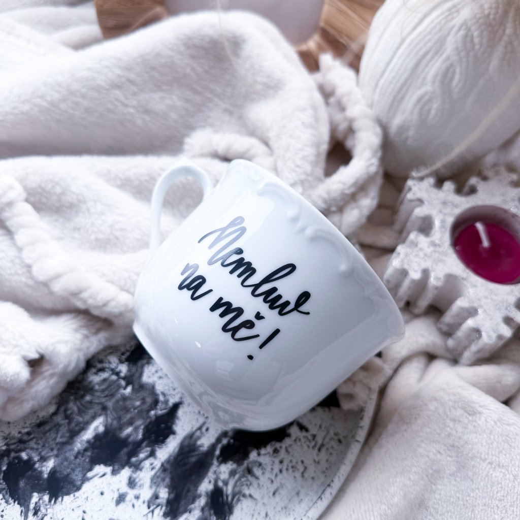 Minimalistický hrnek s autorským motivem psaným ručně naším originálním fontem.