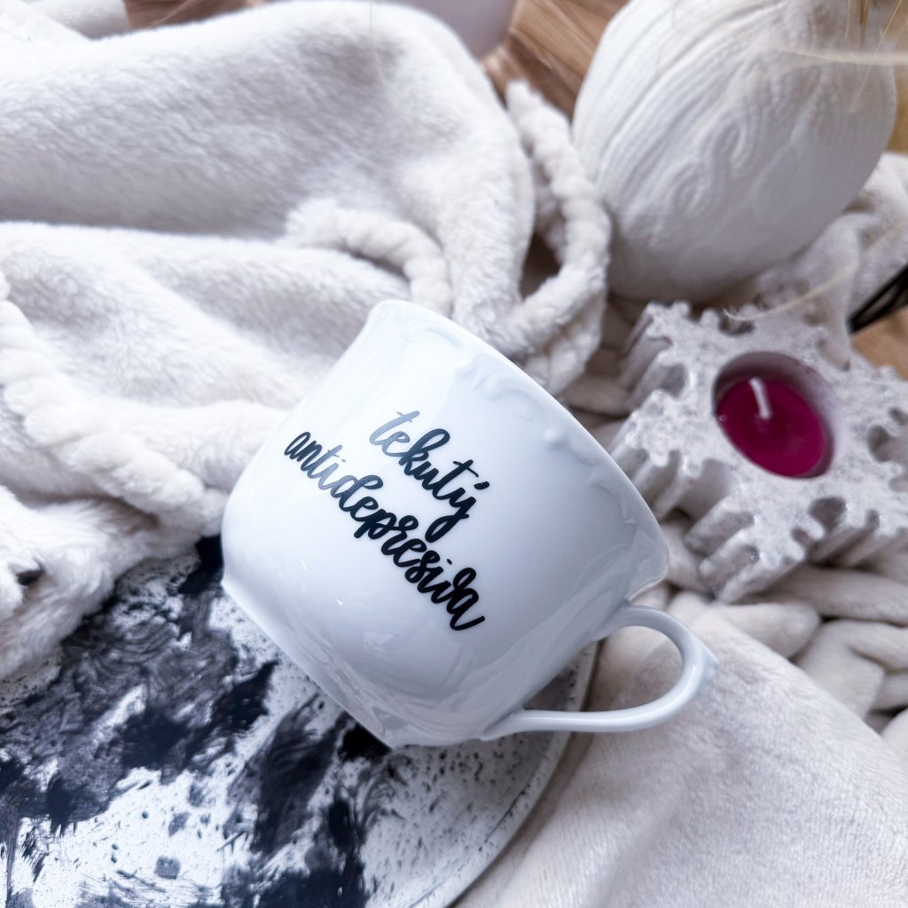 Minimalistický hrnek s autorským motivem psaným ručně naším originálním fontem.