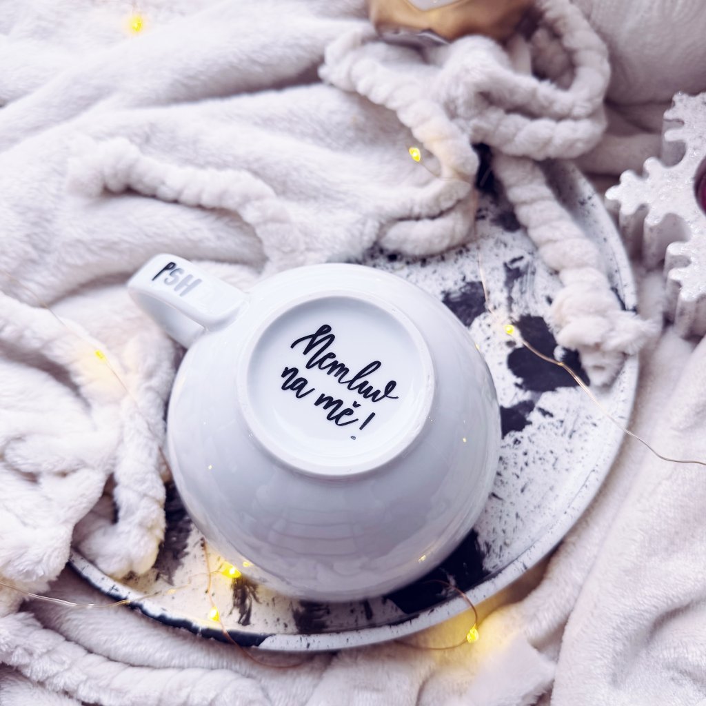 Minimalistický hrnek s autorským motivem psaným ručně naším originálním fontem.