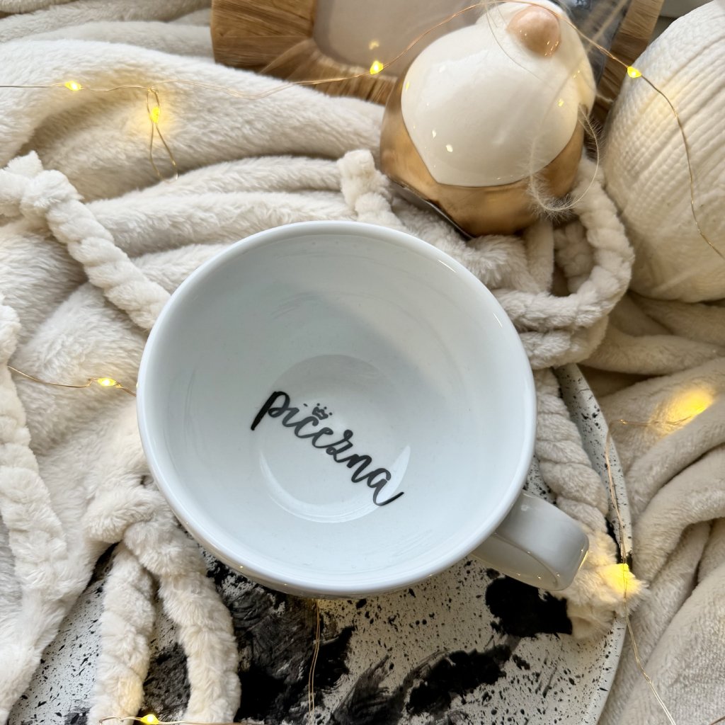 Minimalistický hrnek s autorským motivem psaným ručně naším originálním fontem.
