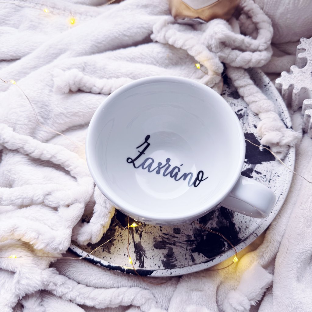Minimalistický hrnek s autorským motivem psaným ručně naším originálním fontem.