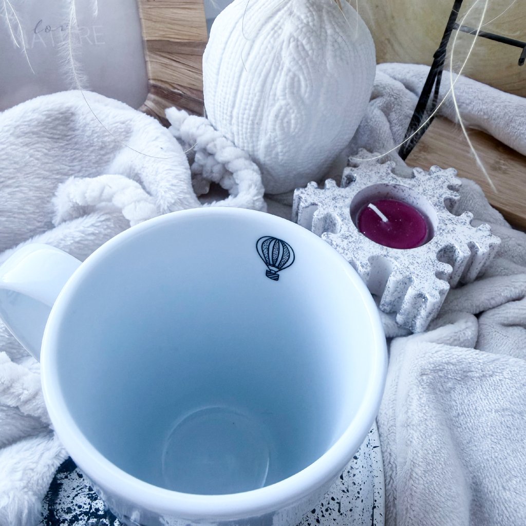 Minimalistický hrnek s autorským motivem psaným ručně naším originálním fontem.