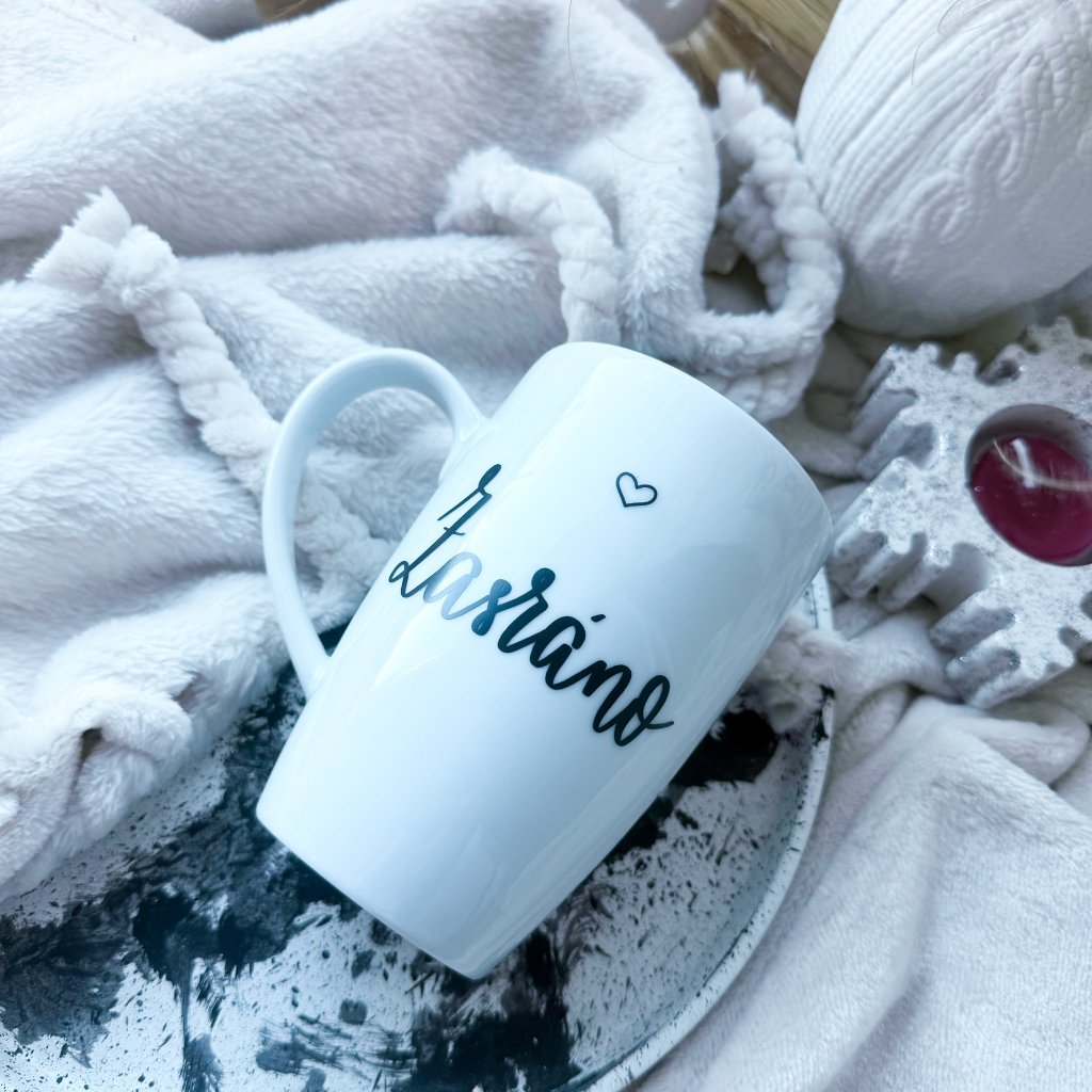 Minimalistický hrnek s autorským motivem psaným ručně naším originálním fontem.