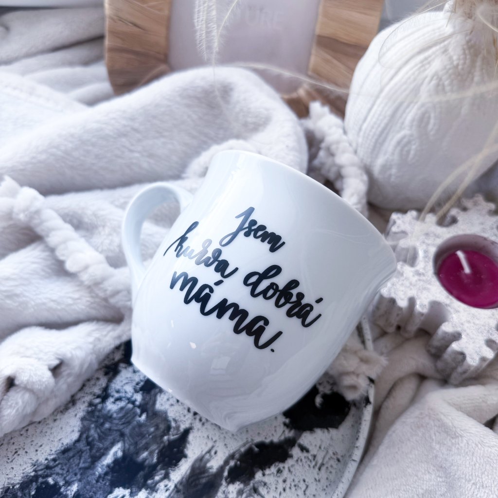 Minimalistický hrnek s autorským motivem psaným ručně naším originálním fontem.