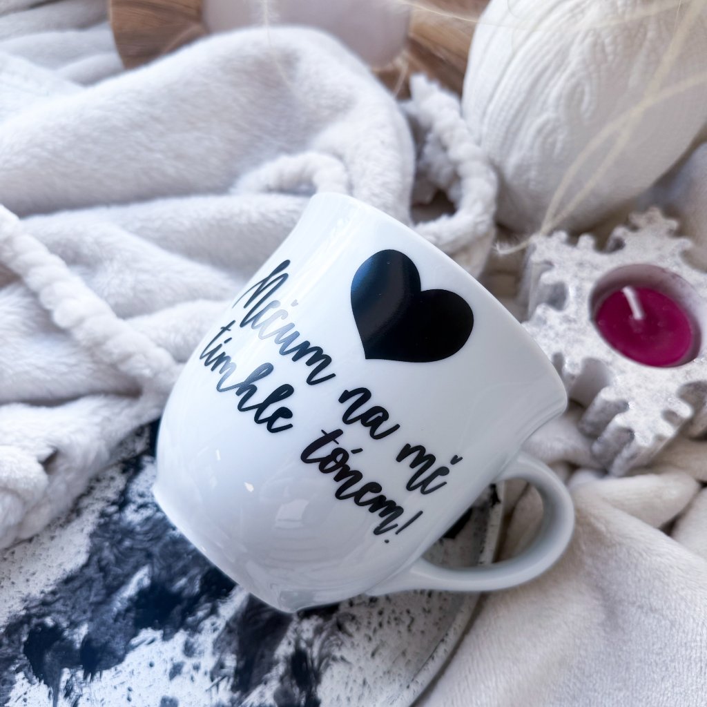 Minimalistický hrnek s autorským motivem psaným ručně naším originálním fontem.