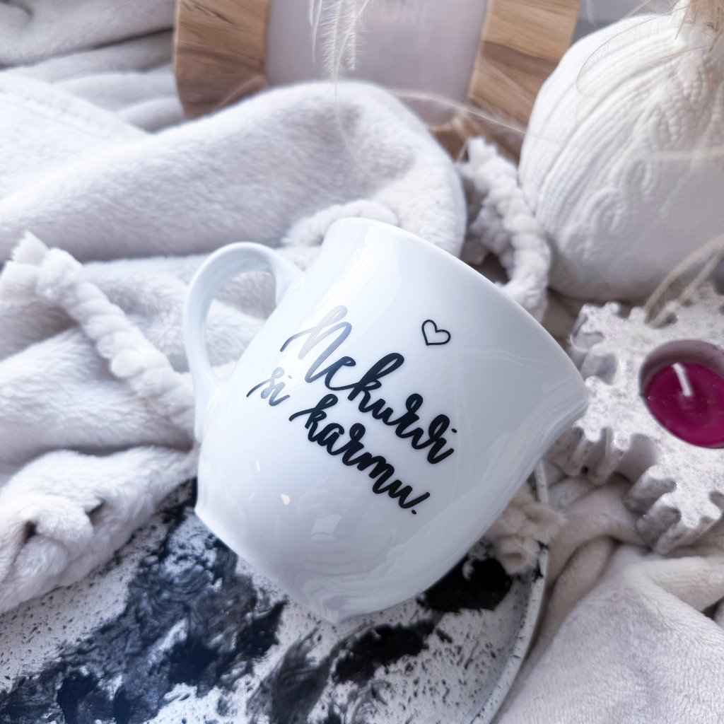 Minimalistický hrnek s autorským motivem psaným ručně naším originálním fontem.