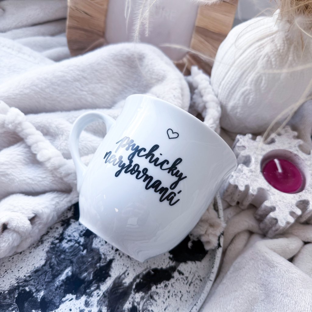 Minimalistický hrnek s autorským motivem psaným ručně naším originálním fontem.