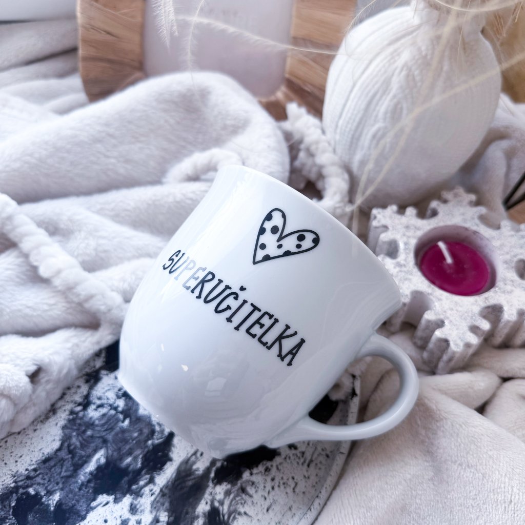 Minimalistický hrnek s autorským motivem psaným ručně naším originálním fontem.