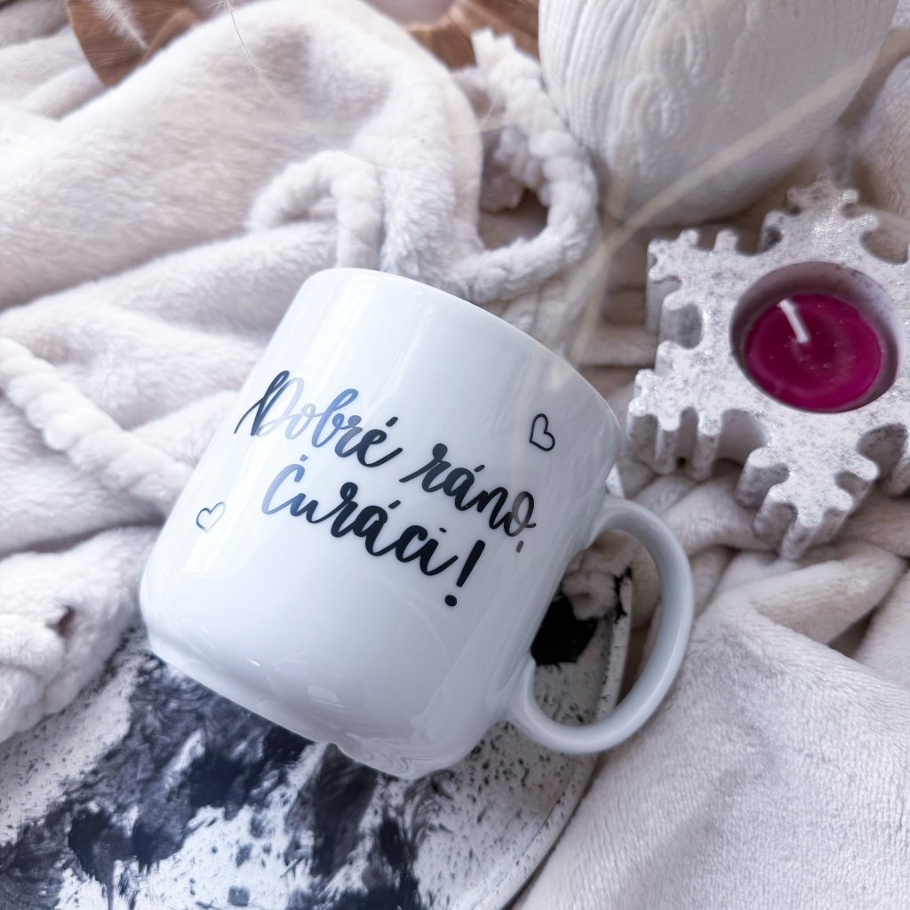 Minimalistický hrnek s autorským motivem psaným ručně naším originálním fontem.