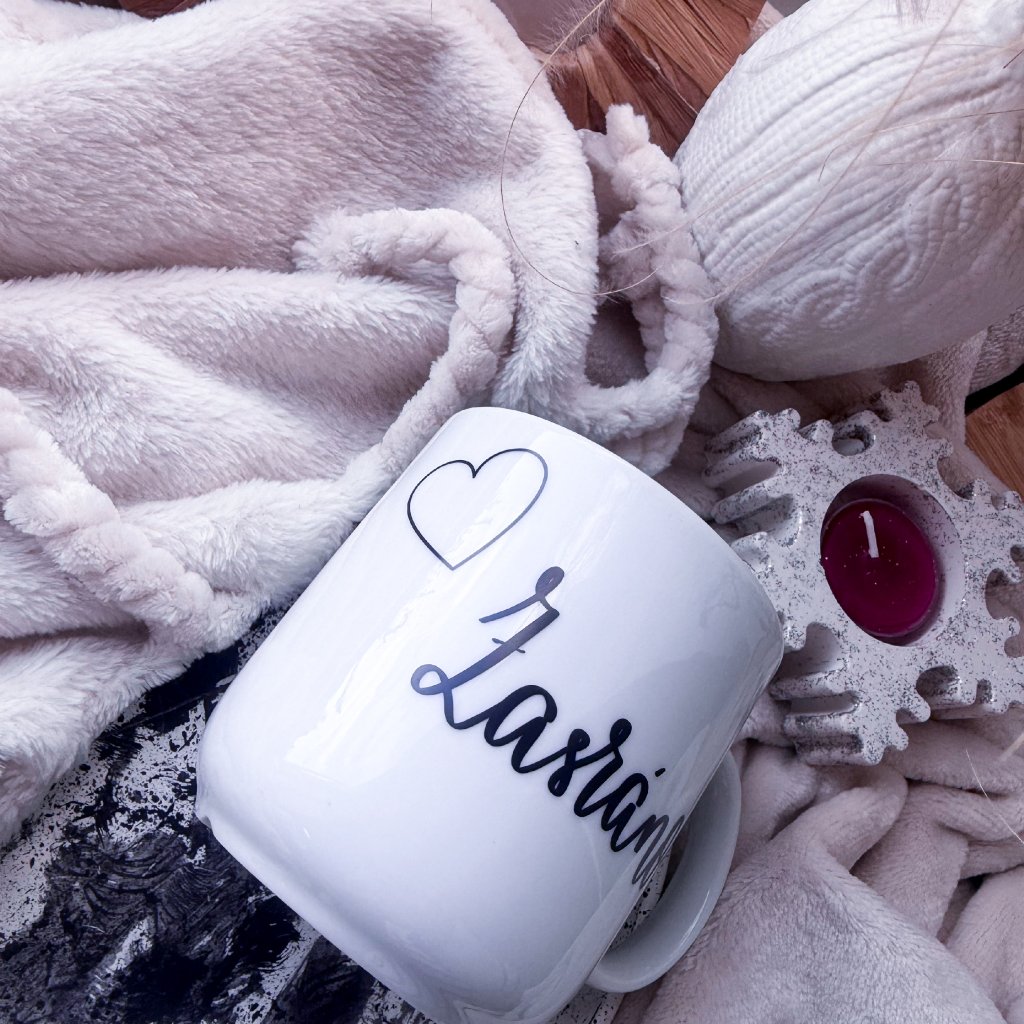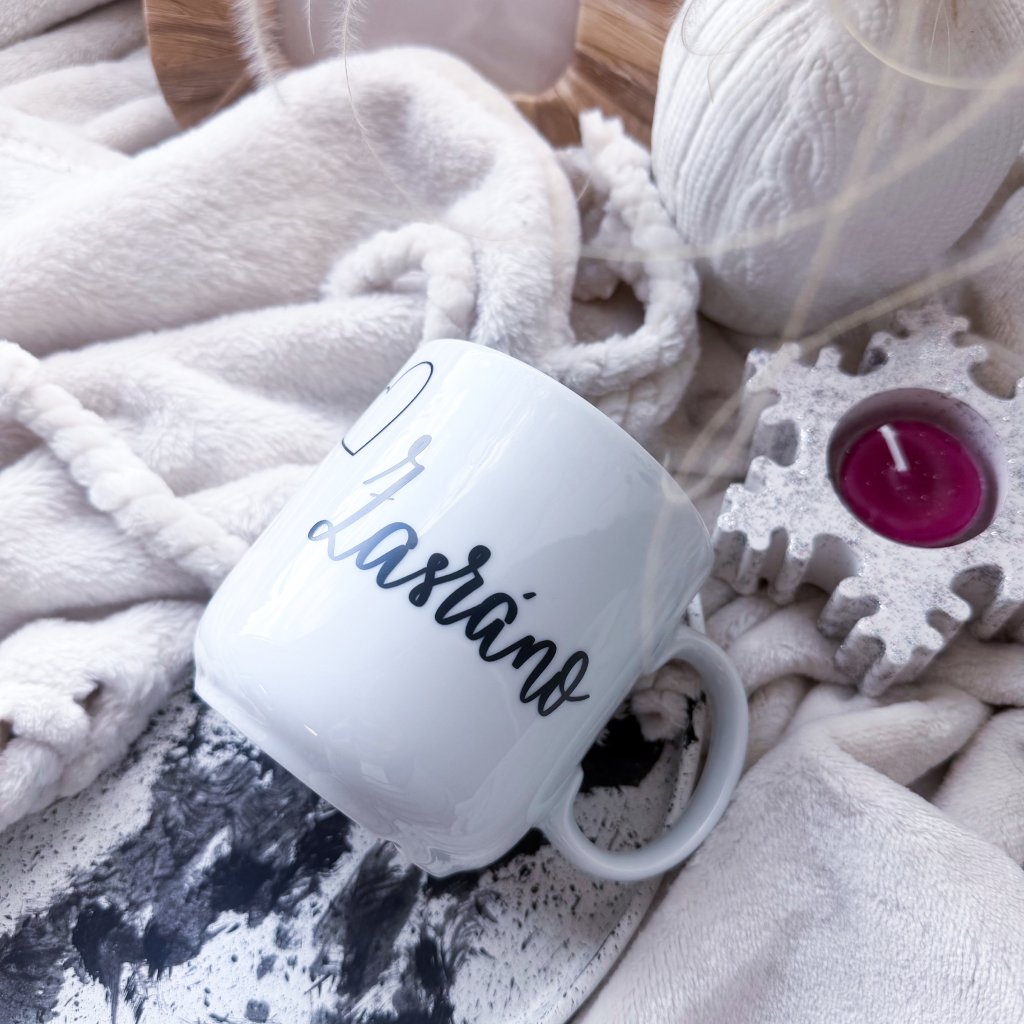 Minimalistický hrnek s autorským motivem psaným ručně naším originálním fontem.