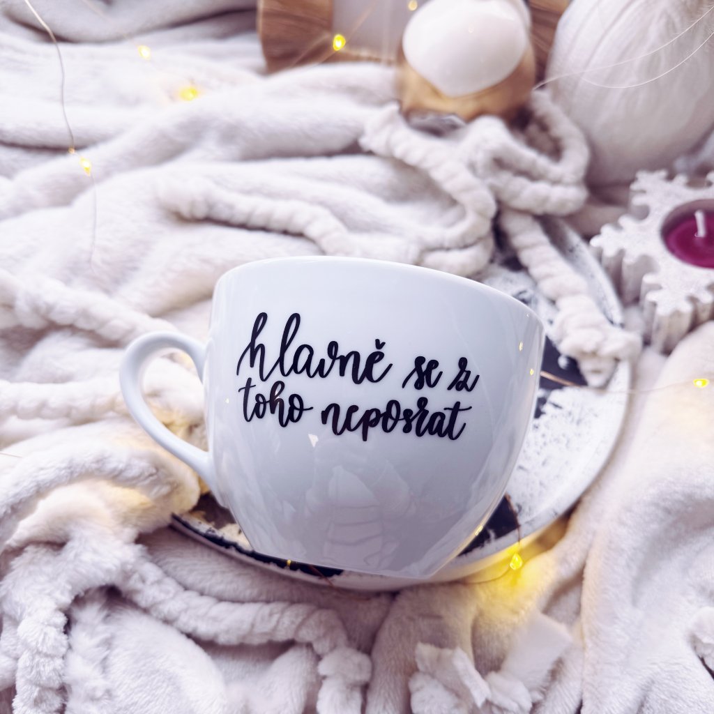Minimalistický hrnek s autorským motivem psaným ručně naším originálním fontem.