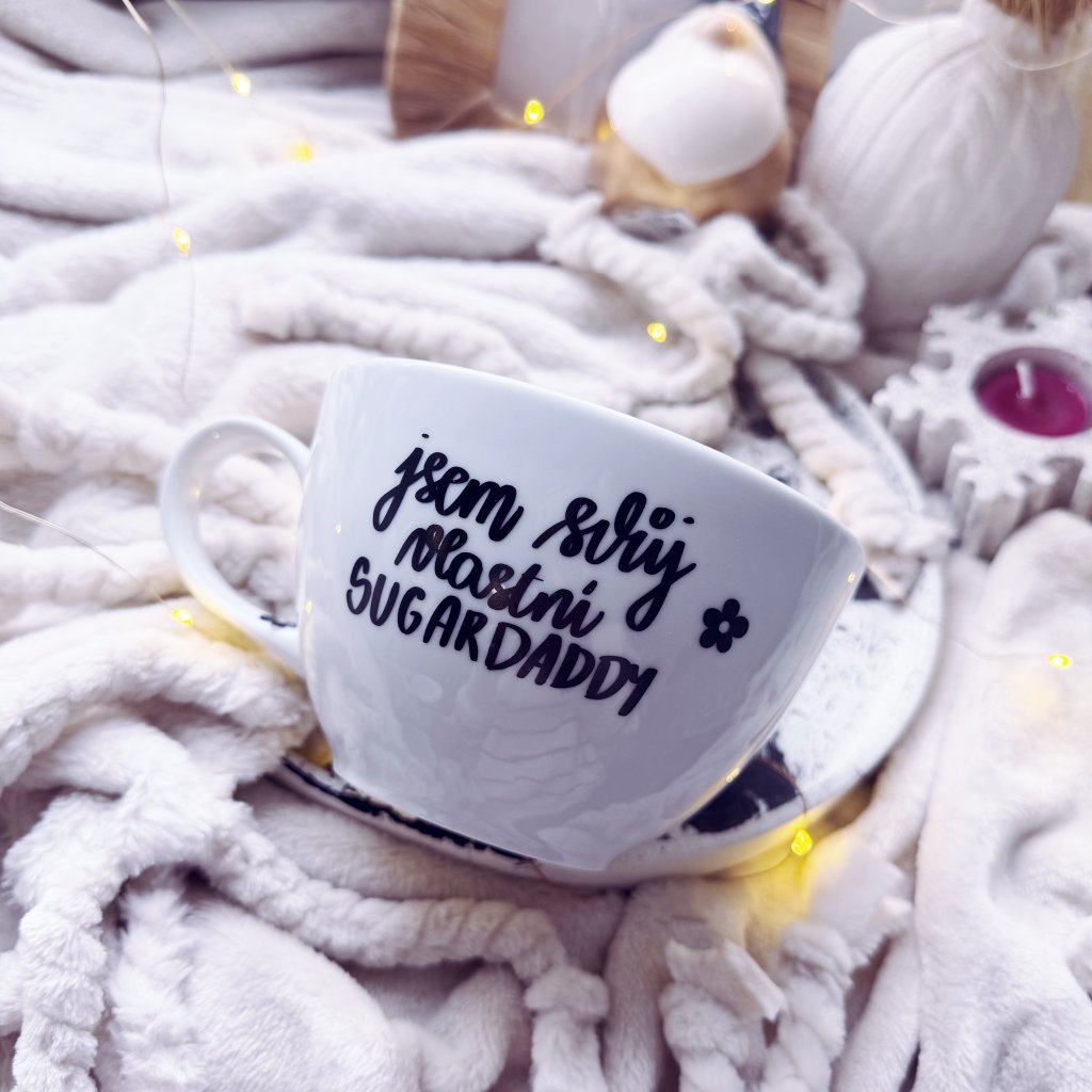 Minimalistický hrnek s autorským motivem psaným ručně naším originálním fontem.