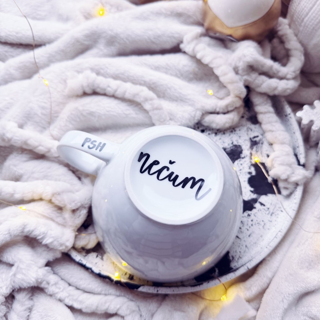 Minimalistický hrnek s autorským motivem psaným ručně naším originálním fontem.