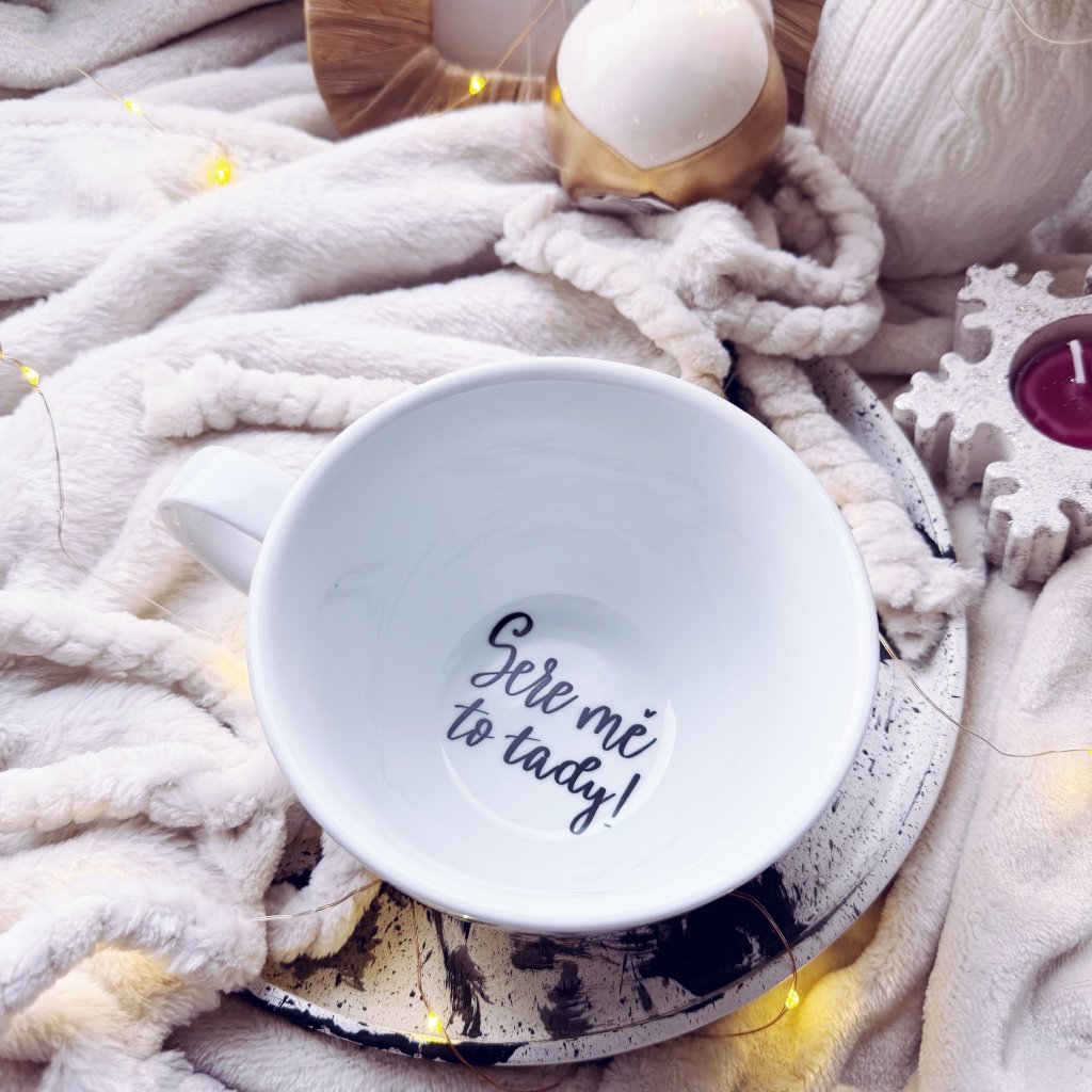 Minimalistický hrnek s autorským motivem psaným ručně naším originálním fontem.