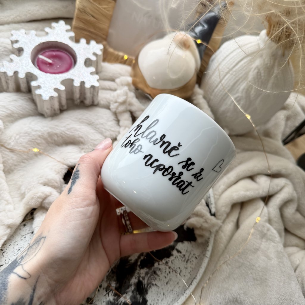 Minimalistický hrnek s autorským motivem psaným ručně naším originálním fontem.