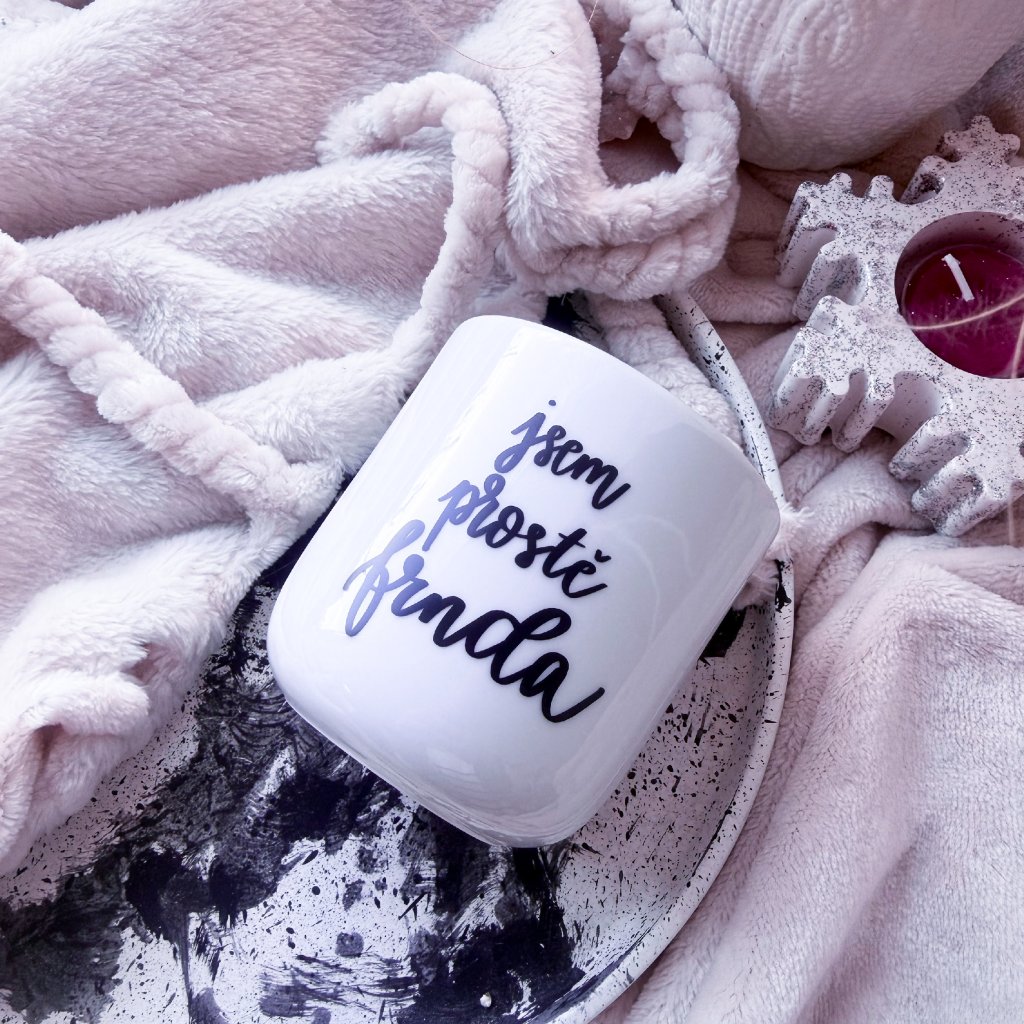 Minimalistický hrnek s autorským motivem psaným ručně naším originálním fontem.