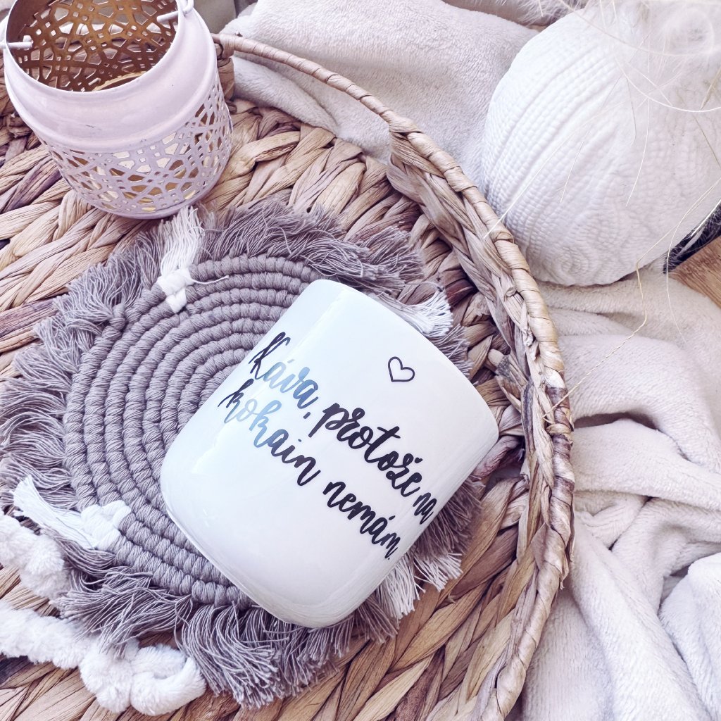 Minimalistický hrnek s autorským motivem psaným ručně naším originálním fontem.