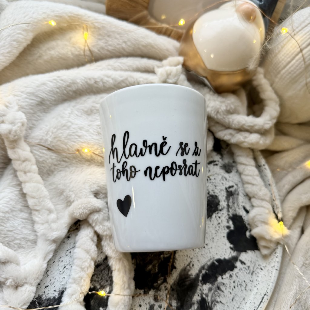 Minimalistický hrnek s autorským motivem psaným ručně naším originálním fontem.
