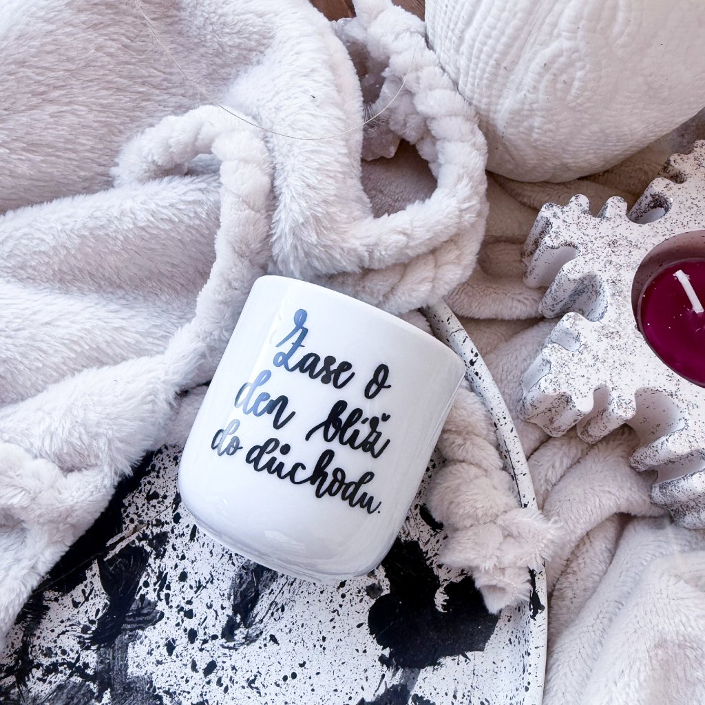 Minimalistický hrnek s autorským motivem psaným ručně naším originálním fontem.