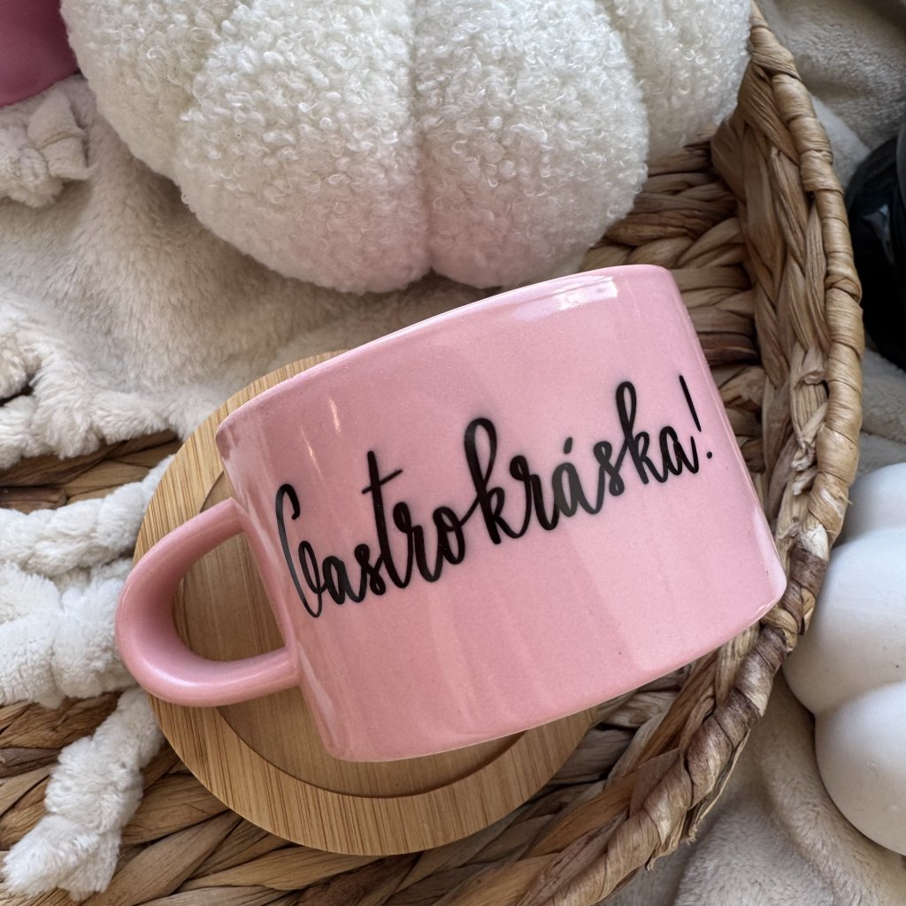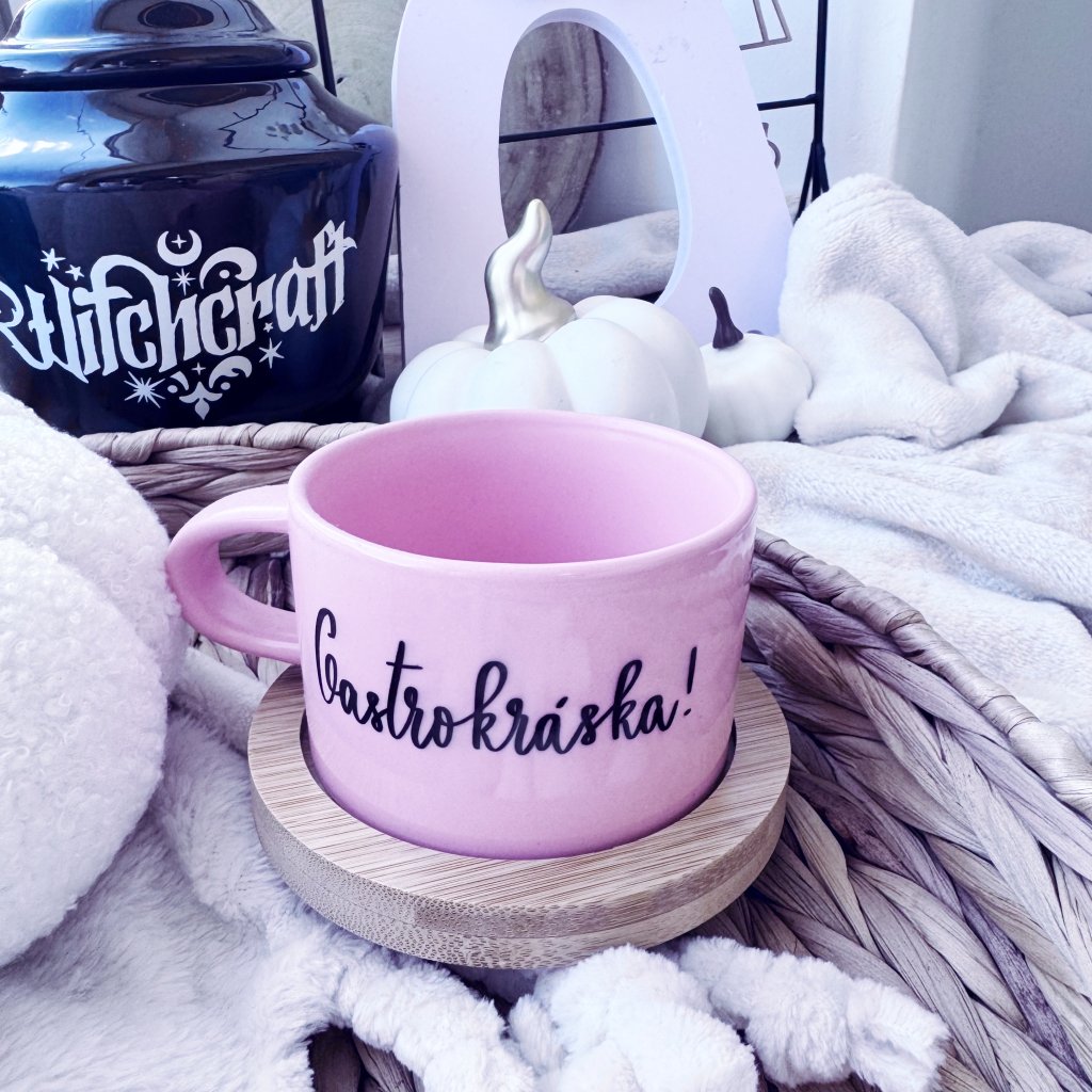 Hrnek  keramický „piškot“ s bambusovým podtáckem