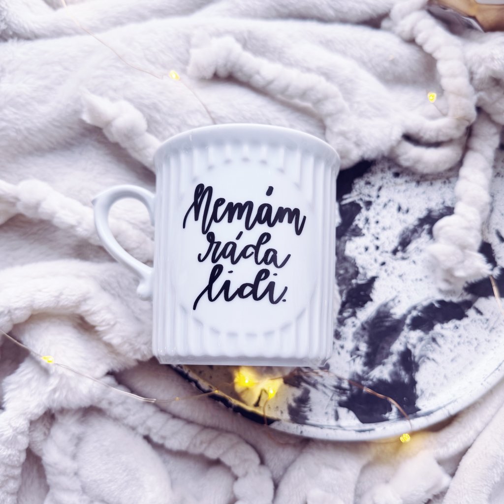 Minimalistický hrnek s autorským motivem psaným ručně naším originálním fontem.
