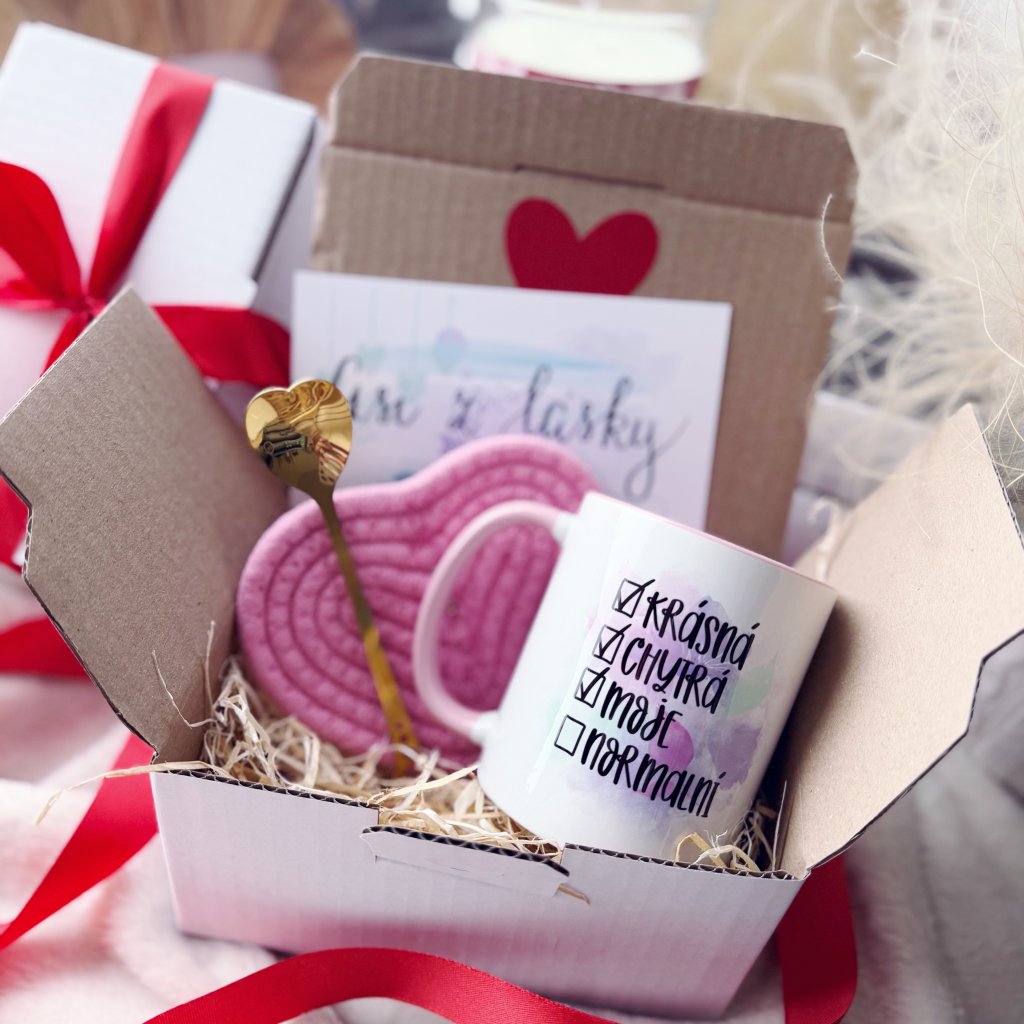 Krabička obsahuje: Hrnek s růžovým uchem