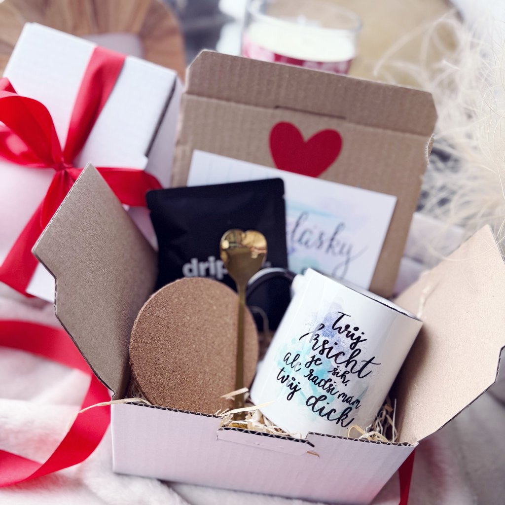 Dárkovou kartičku a celá krabička je v dárkovém balení s červenou stuhou.