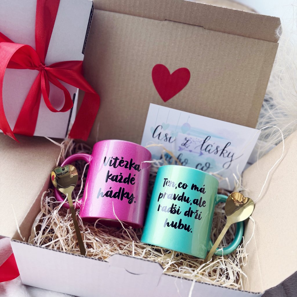 Dárkovou kartičku a celá krabička je v dárkovém balení s červenou stuhou.