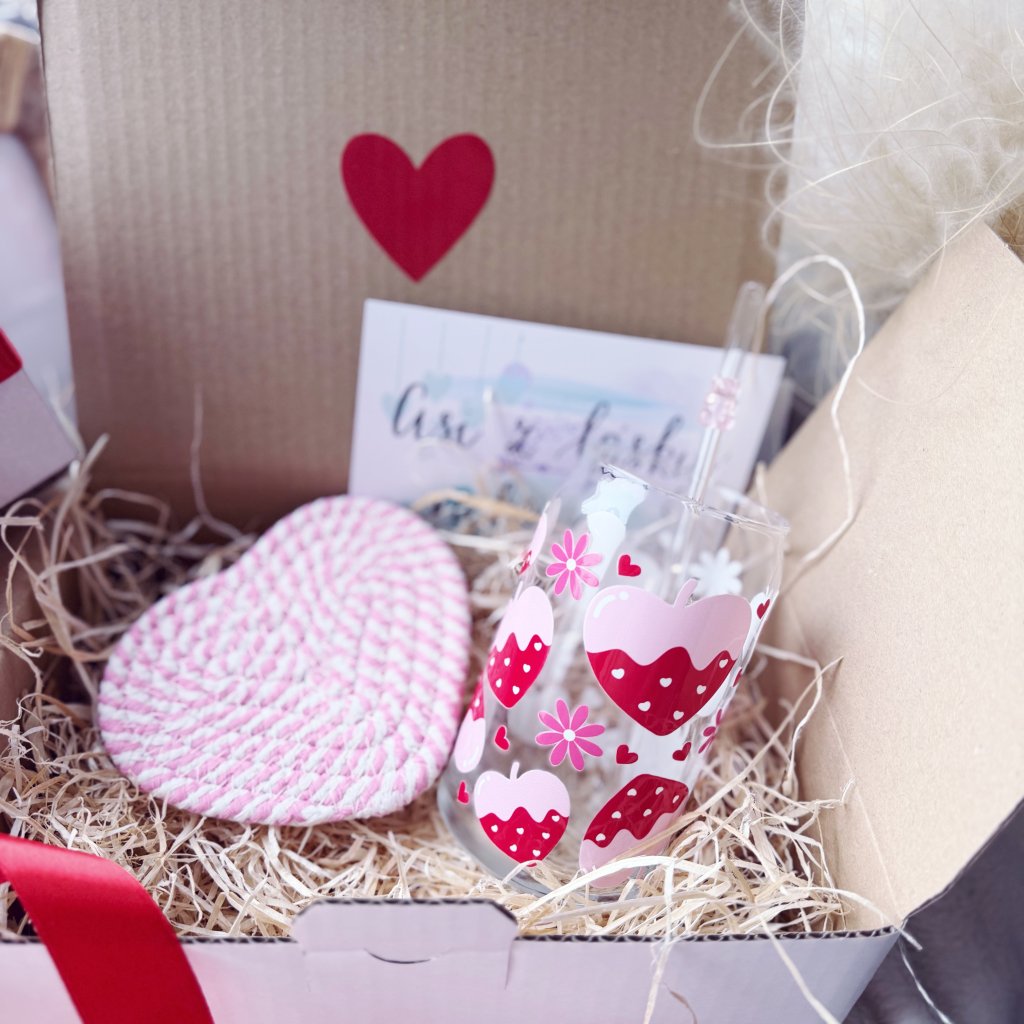 Dárkovou kartičku a celá krabička je v dárkovém balení s červenou stuhou.